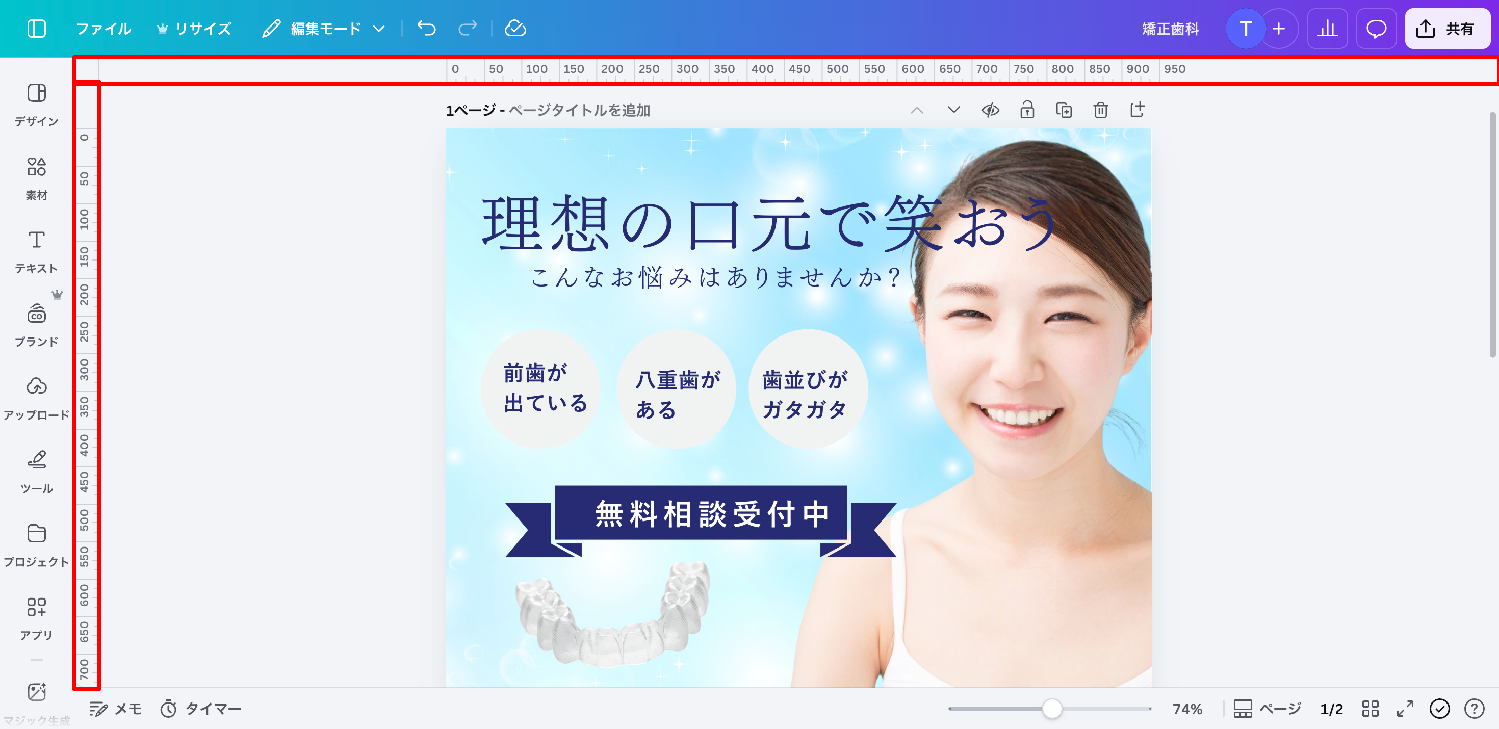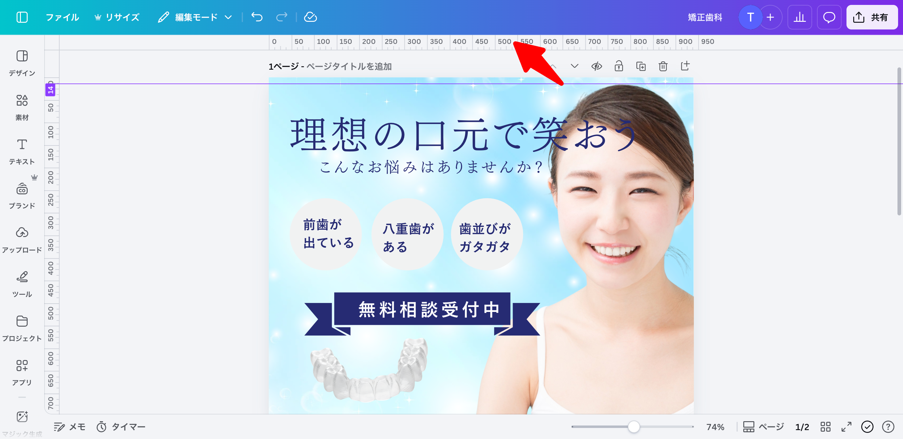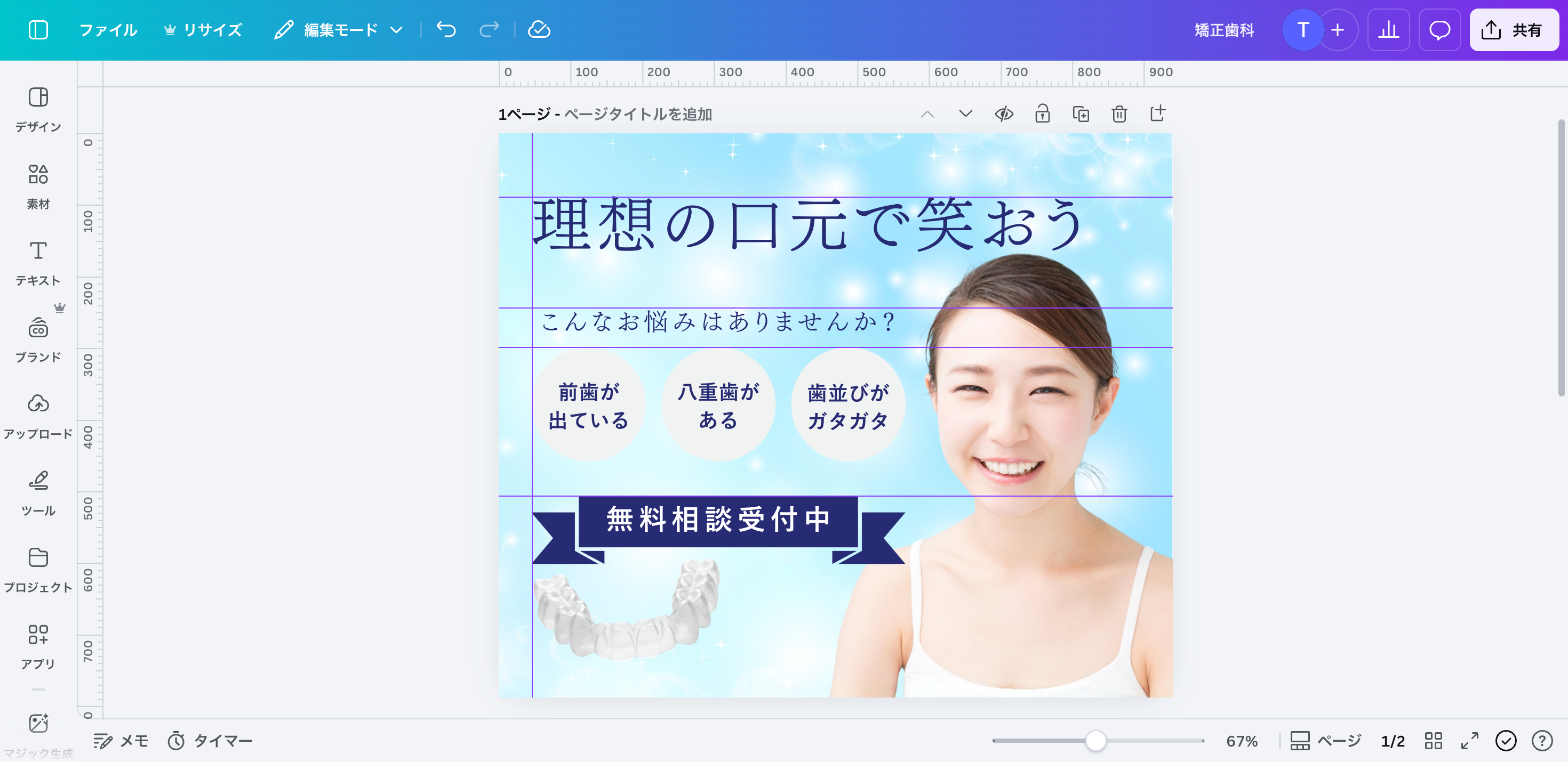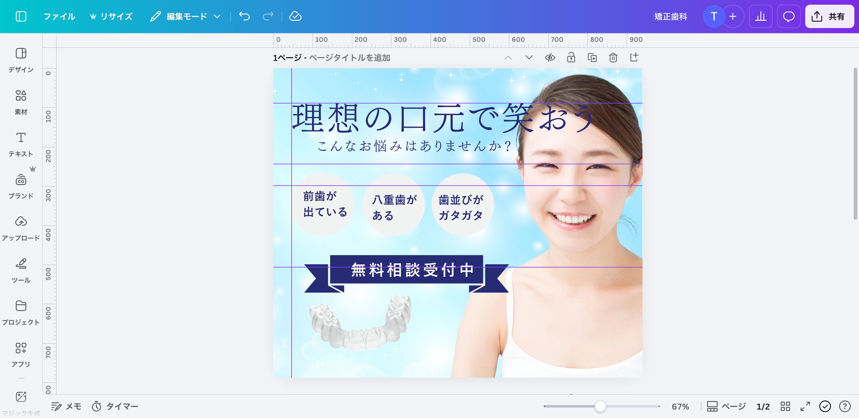 ※今回は分かりやすい例として矯正歯科医院の広報画像を想定していますが、業種を問わず使える基本操作です。